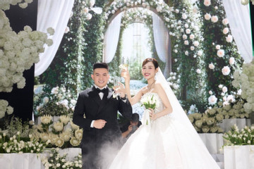 Hoa hậu Đỗ Thị Hà và chú rể Viết Vương tổ chức tiệc cưới hoành tráng tại Quảng Trị với không gian lộng lẫy. Tuy nhiên, do ảnh hưởng của bão số 12, rạp lại dựng ven sông k...
